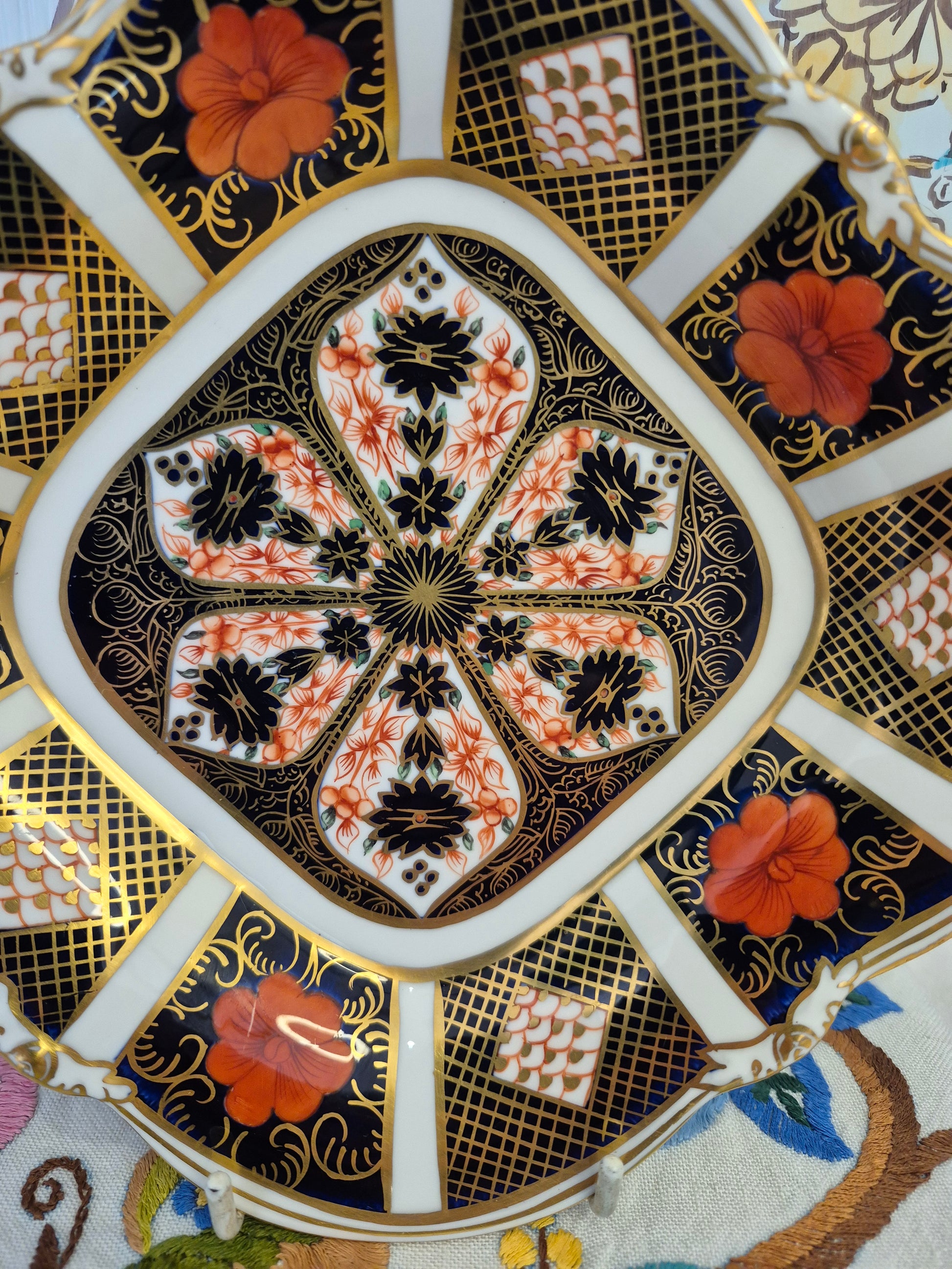 A beautiful Royal Crown Derby Old Imari Acorn Design four footed dish in perfect condition.