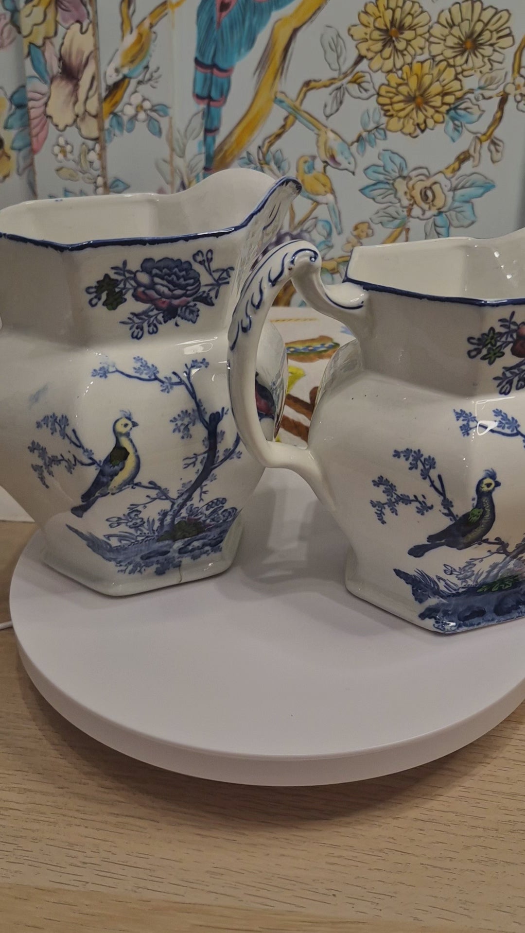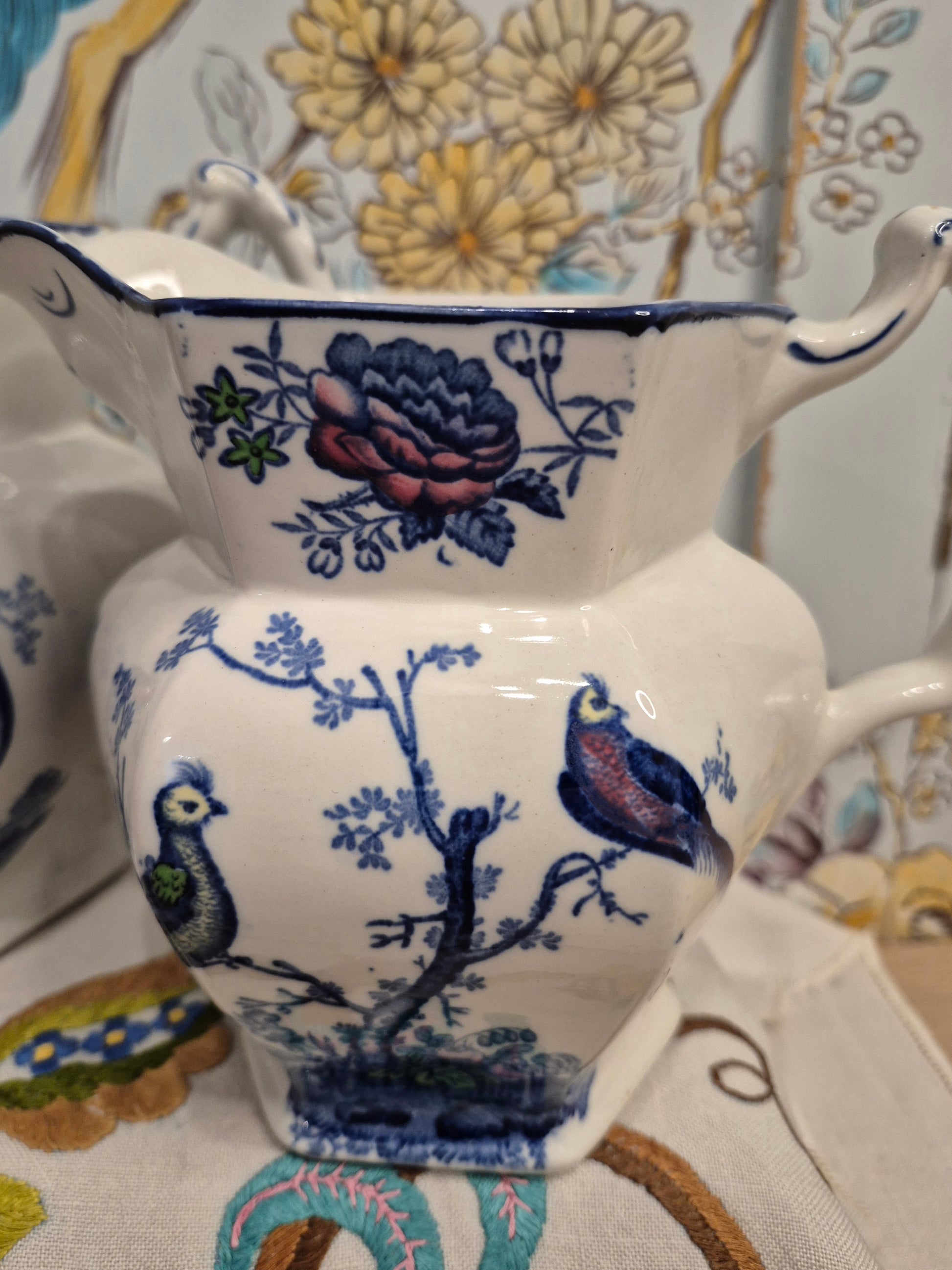 A Pair of Wood and Sons Antique Jugs in the Oriental Birds Design