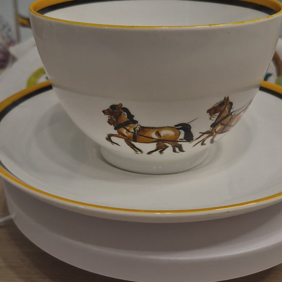 A large 1930s breakfast cup and saucer by Royal Worcester designed by H R Millais. The cup features a design of a coach and horses and Millais specialised in equestrian painting. The cup and saucer are in excellent undamaged condition.