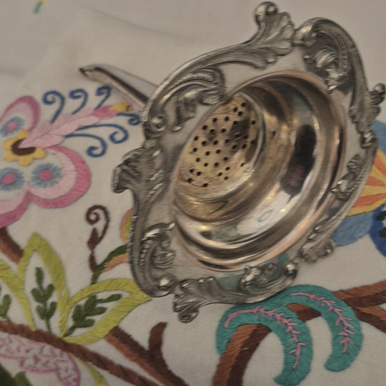 A very good quality Georgian Sheffield Plate Wine Funnel with repousse foliate design around the edges. In excellent condition with a little of the copper showing through the plate in a couple of small areas.