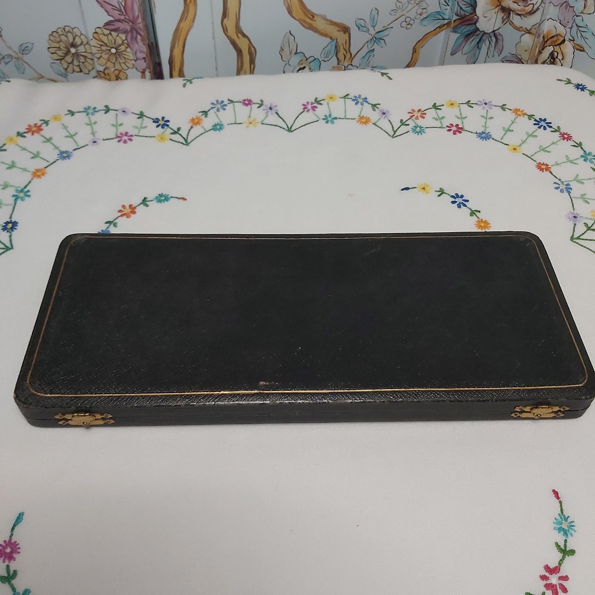 A very nice boxed set of twelve silver plated teaspoons with sugar nips. The spoons and nips have an attractive bright cut pattern engraved into the handles. The spoons are marked EPNS, but no makers mark. The set is in perfect and possibly unused condition; the box just has a few minor scuff marks on the outside.